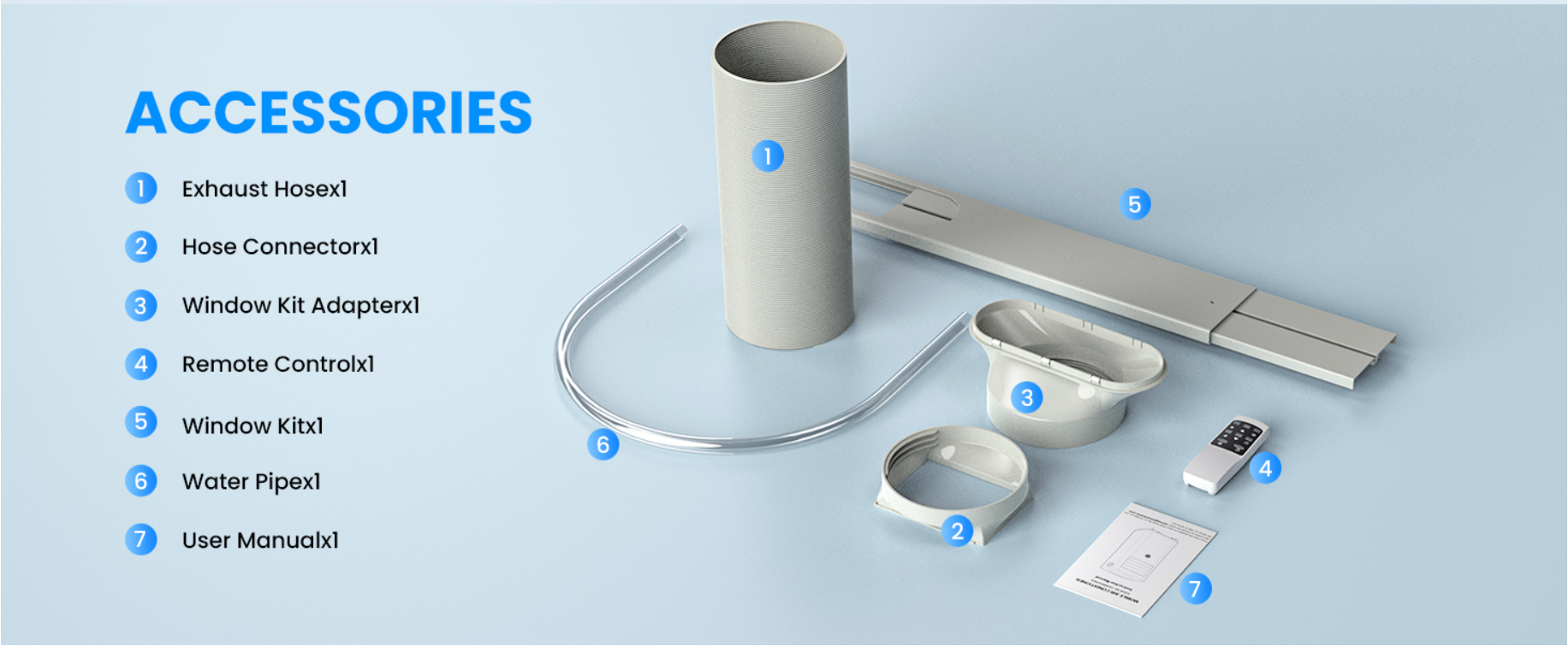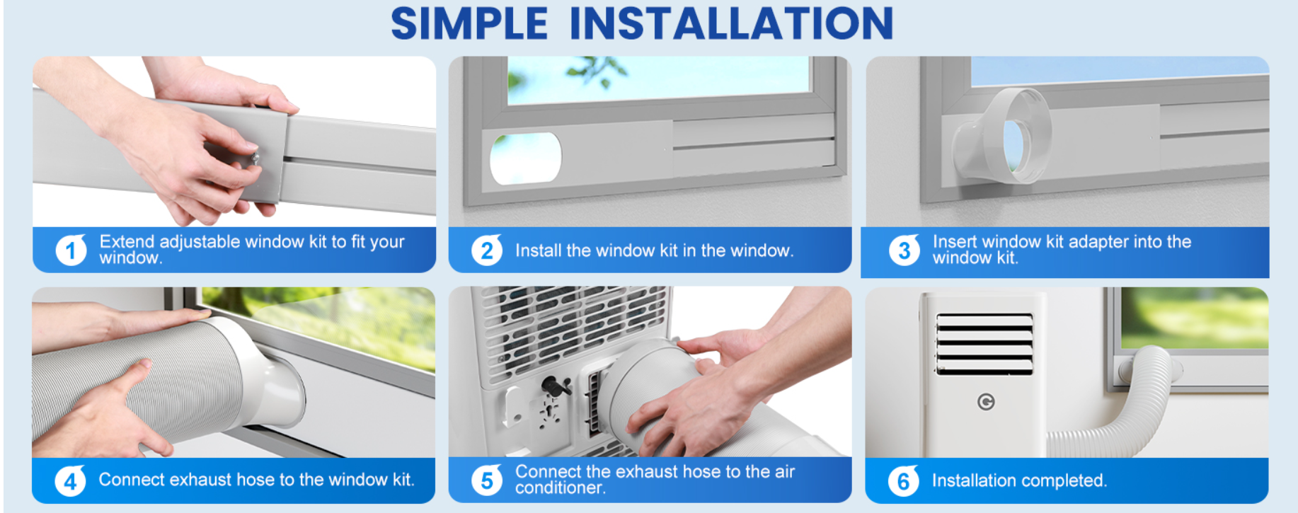 • 🆒【Smooth Move & Effortless Assembly】This air conditioner is designed with two built-in handles and four 360° casters for room-to-room mobility effortlessly in bedroom, office or in the cabin around your home. We offer window kits that are compatible with most sliding windows, catering you an effortless installment without drilling. And our unique plug design behind simplifies storage and transportation of the air conditioner.