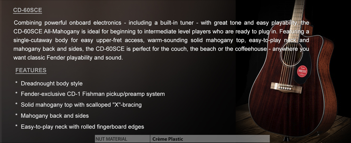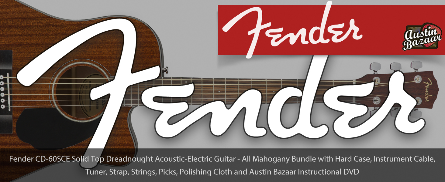 Fender CD-60SCE Solid Top Dreadnought Acoustic-Electric Guitar - All Mahogany Bundle with Hard Case, Instrument Cable, Tuner, Strap, Strings, Picks, Instructional DVD, and Polishing Cloth
