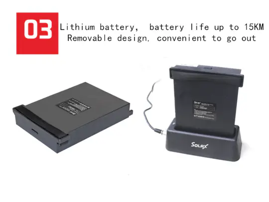 The Transformer comes with a Lightweight Lithium battery pack. 13.5 Miles on a single charge, Airline approved and lasts for years.